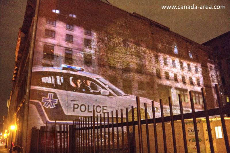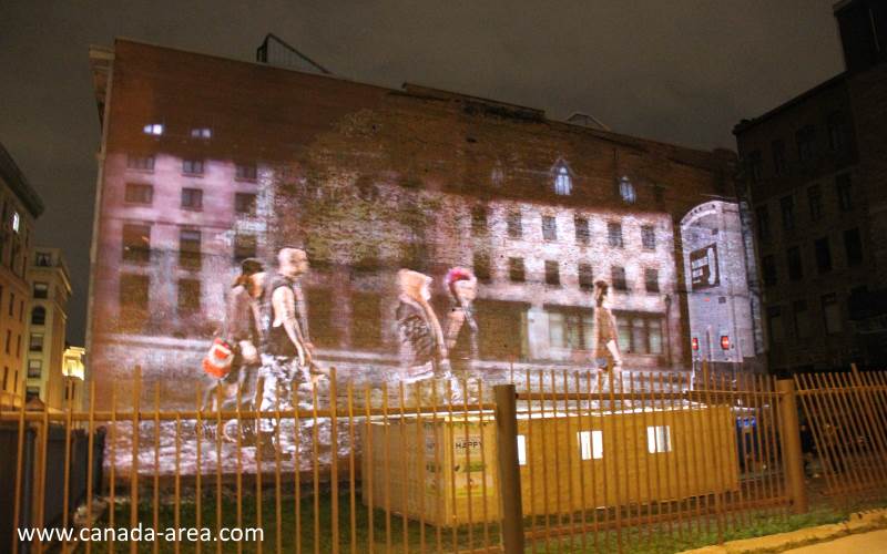 Я не знаю, что это значит, но в центре Монреаля ночью можно увидеть какие-то видеоролики, проецируемые на здания.