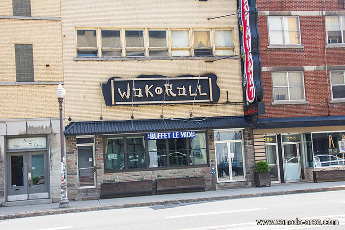 Немного мрачное оформление ресторана-буфета практически в самом центре Квебек Сити - Wokoroll. Я хотел в него зайти, но к сожалению он был закрыт.