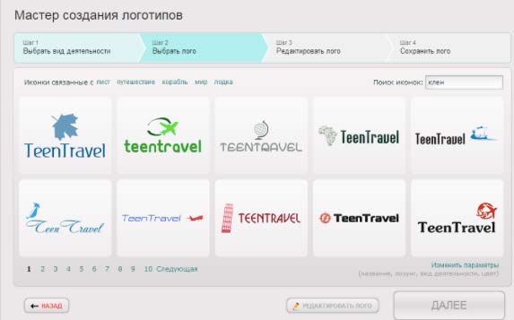 Редактировать логотип можно сразу, как только вы выберете наиболее подходящий вам.