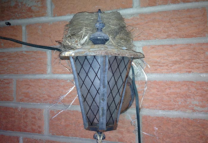 Будущие пернатые родители неплохо устроились на фонаре, и очень пугливые. Каждый раз, когда кто-то из нас выходит на балкон, они улетают через дорогу или садятся на крышу и начинают по птичьи орать.