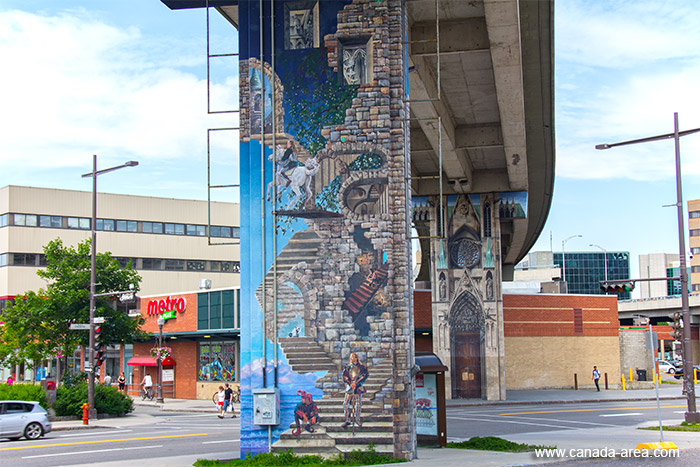 Чтобы мосты в городе не выглядели серо, их можно как-то разукрасить. Именно так поступили в Квебек Сити - столице провинции Квебек. В цетрне города столбы моста скоростной трассы разукрашены граффити рисунками, которые сделали серый бетон очень красивым.