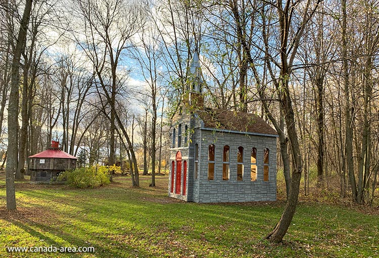 Миниатюрные дома, церковь и даже мельница расположены на пляже городка Saint-Zotique провинции Квебек. Если искать в Google Maps, то можно использовать адрес 175 8e Rue, Saint-Zotique, QC, но к пляжу все же лучше спускаться по 81e Av.