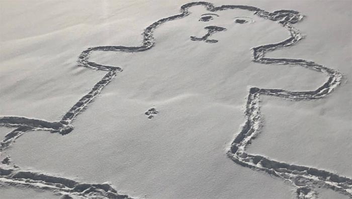 Хорошая добрая новость. Кто-то сделал медведя на снегу и это классно. А то какой-то негатив в мире, стреляют, бастуют, нелегалы. Все это мелочи, когда у большого медведя появляется пупок и весь мир решает загадку.