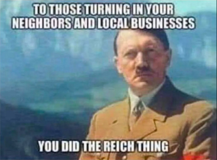 На изображении Гитлера написана надпись, которая сравнивает тех, кто мешает локальному бизнесу с рейхом.