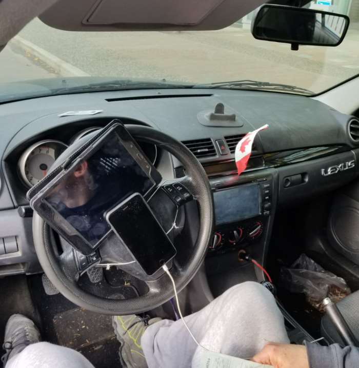 Мужчина, которого поймали за рулем автомобиля, к рулю которого были скотчем приклеены планшет и телефон, сильно удивился, что он нарушил закон.