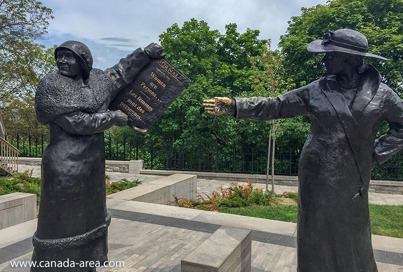 Памятники в Отаве у здания парламента, чаепитие и борьба за права женщин.