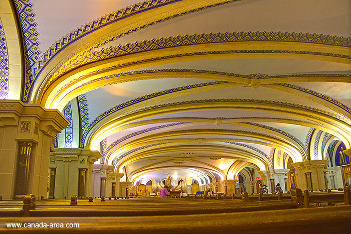 Церковь была основана в 1876-м году на реке Saint Lawrence River. Архитектура выполнена в норманнском и готическом стиле. В принципе, подобных церквей даже в Квебеке несколько, но Basilica of Sainte-Anne-de-Beaupre не только самая красивая, но и наверно самая крупная.